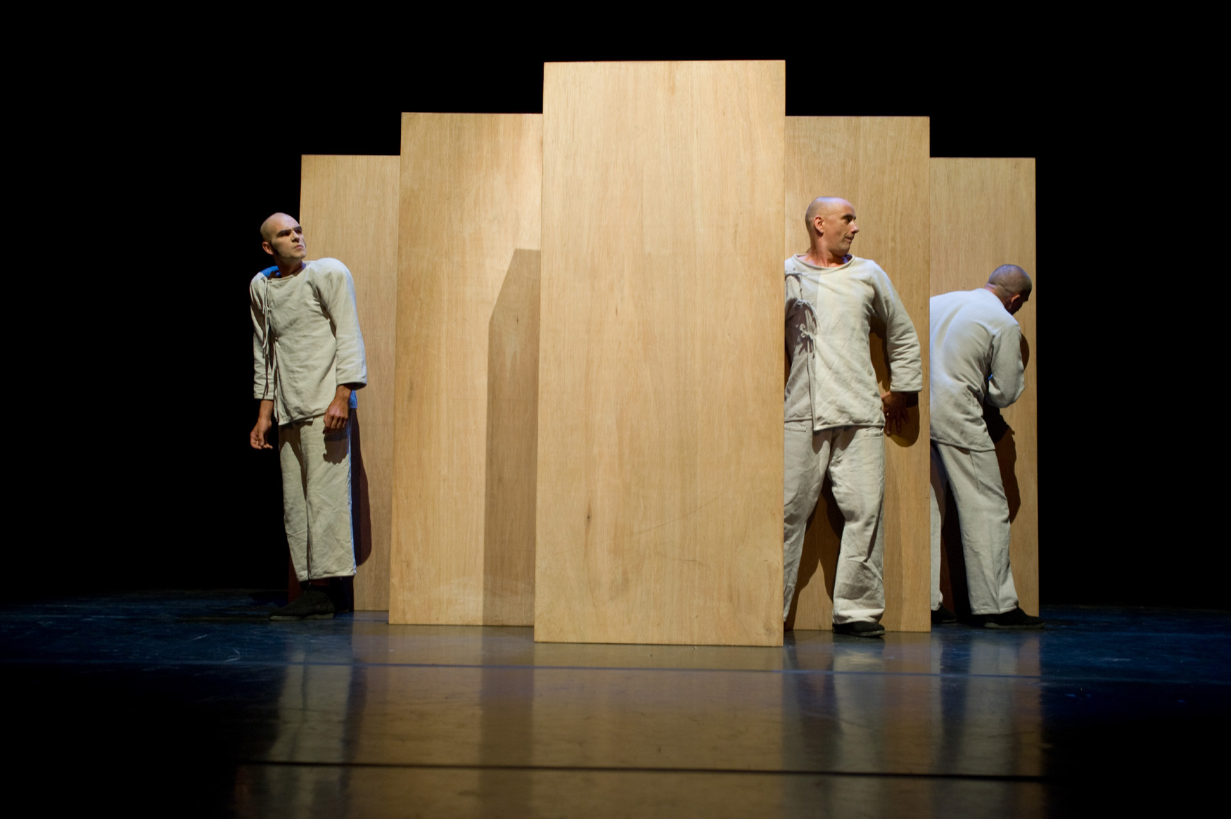 4 people seemingly captive (in an asylum?) among wooden walls of infinite possibilities display amazing skill of juggling, balancing, music, precision…one could not keep his/her eyes off the “tricks” they were doing even amidst the constant reminder of a booming “Calm…Calm…Calm”.